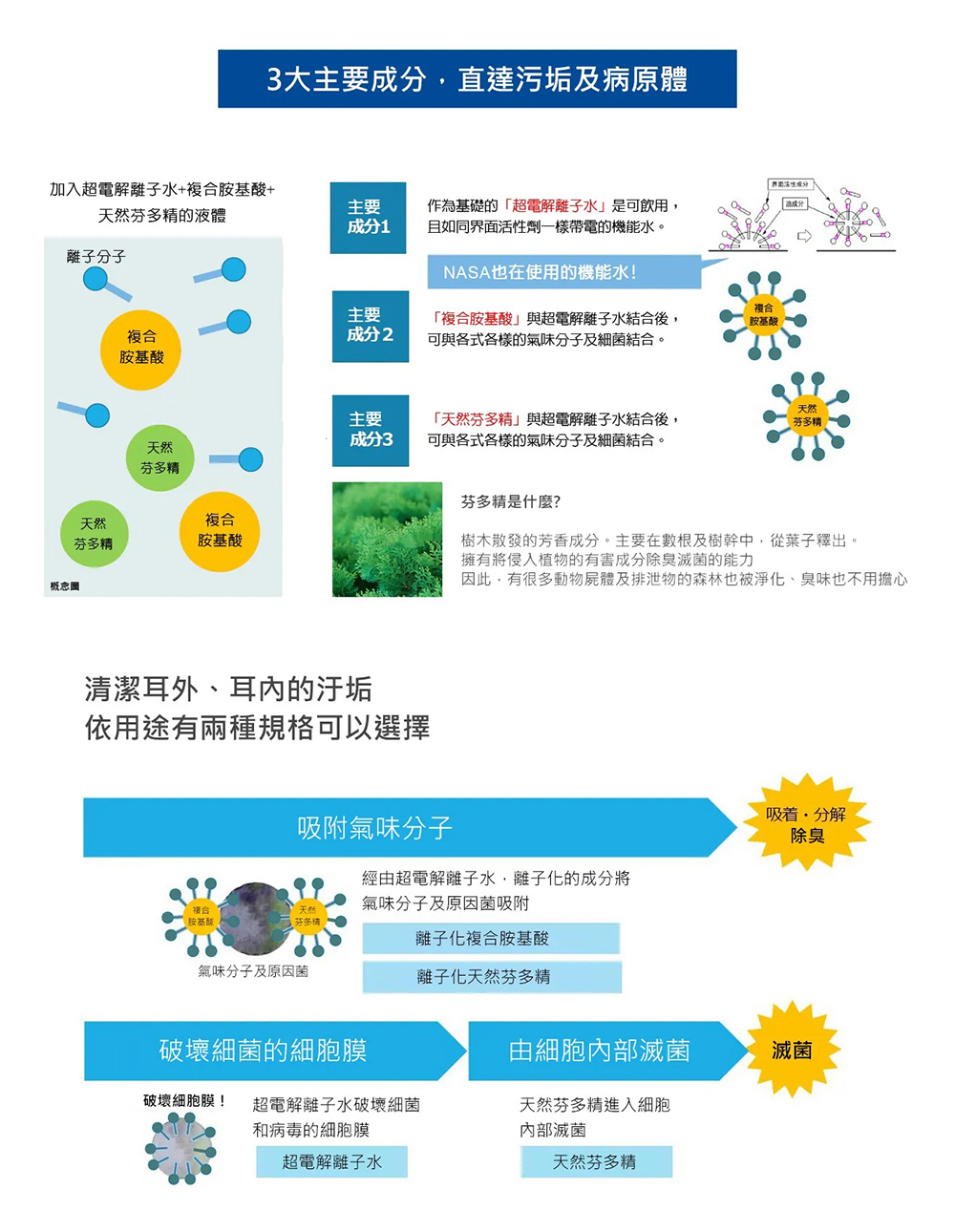 ● 藉由複合胺基酸、超電解離子水、天然芬多精的三重效果