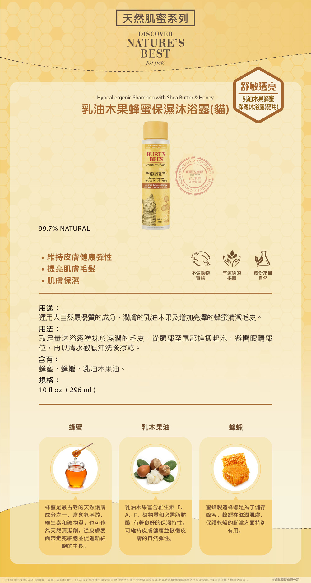 Burt's Bees® 低致敏寵沐浴露用大自然特好的成分自然清潔皮毛