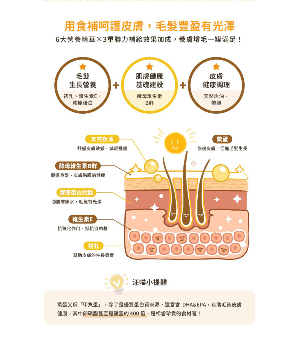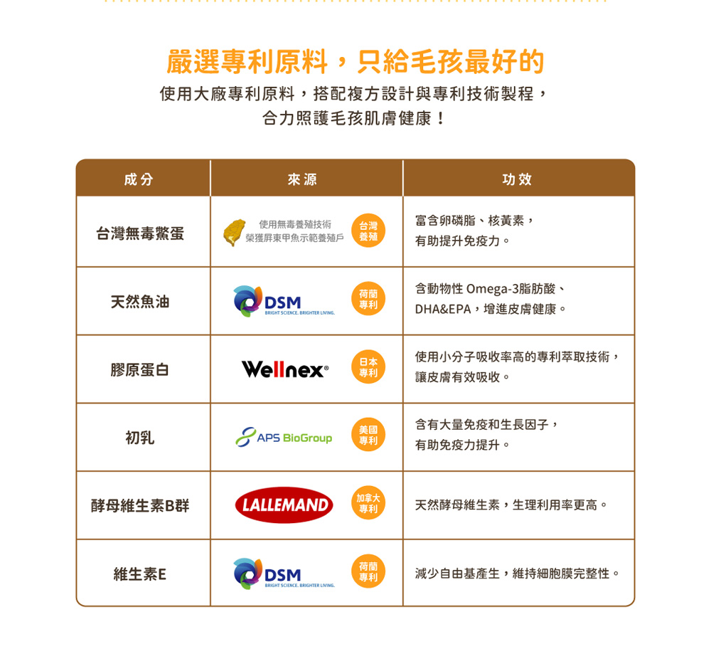 ● 天然鱉蛋 x 五大國際專利原料,讓毛孩皮膚健康、毛髮濃密