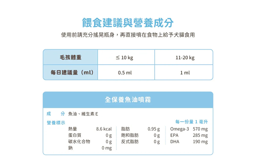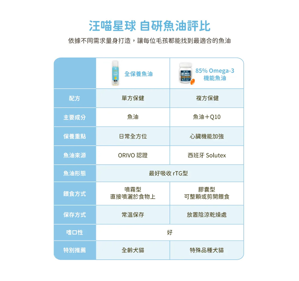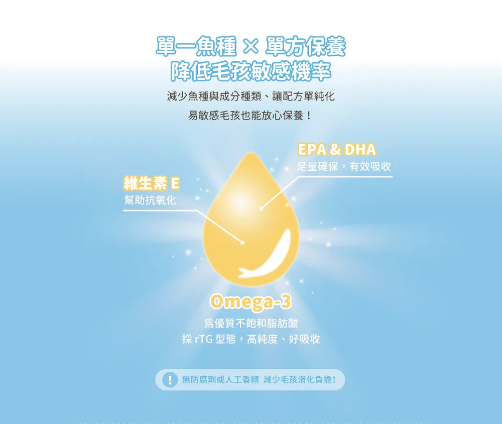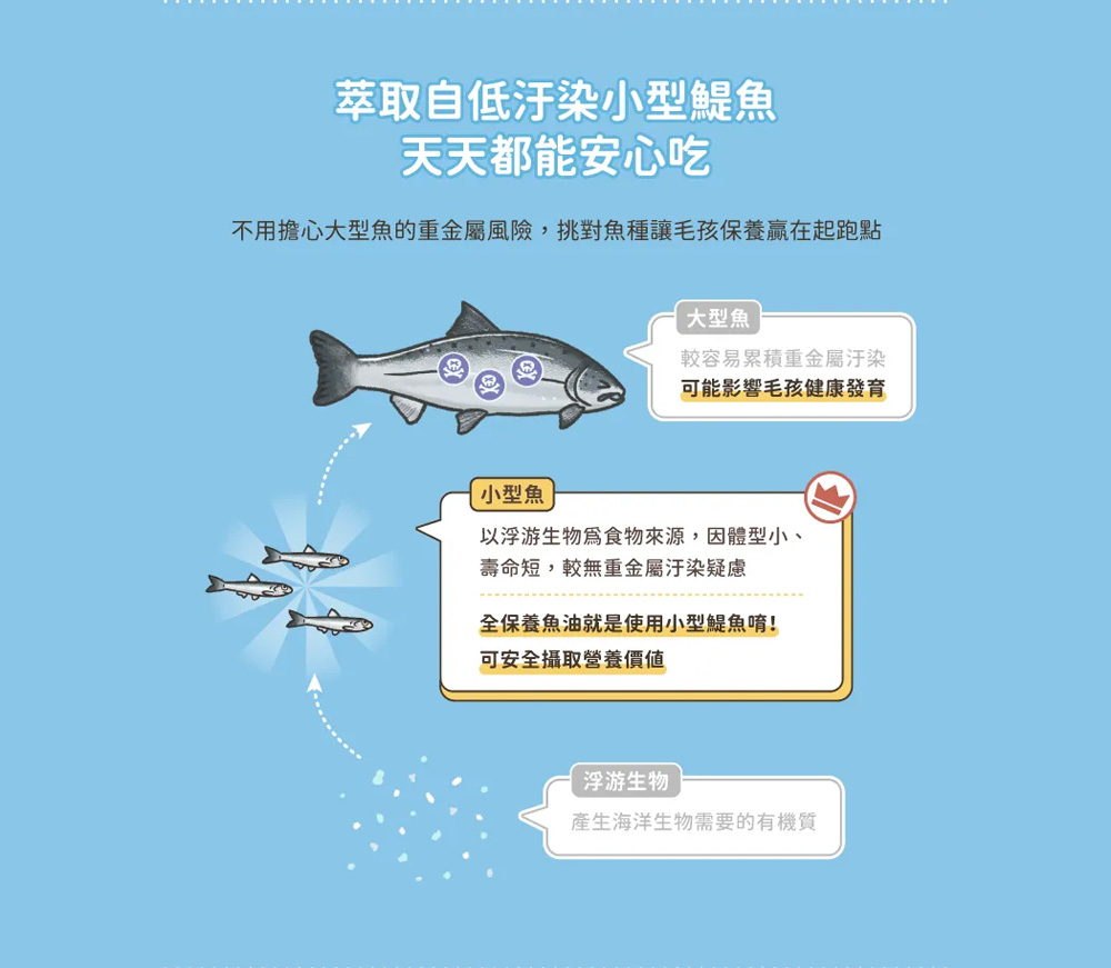 ● 單方保健 X 單一小型魚種,減少毛孩過敏機率