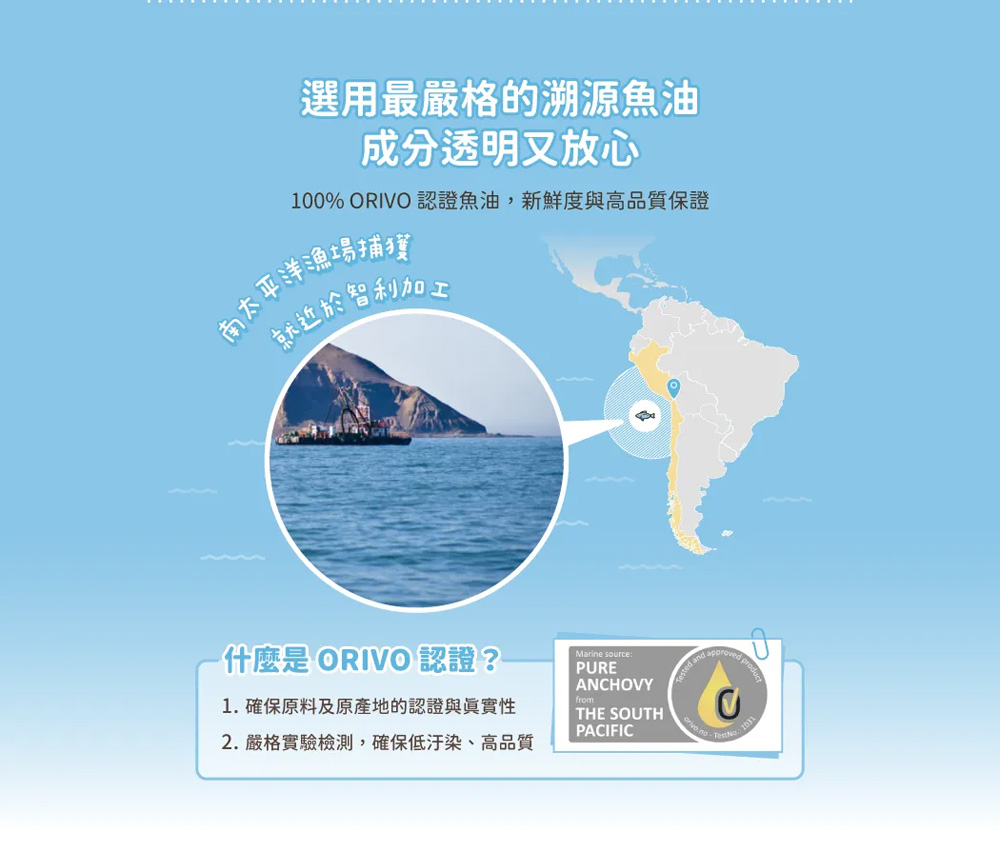 ● ORIVO 認證溯源魚油,高純度又安心