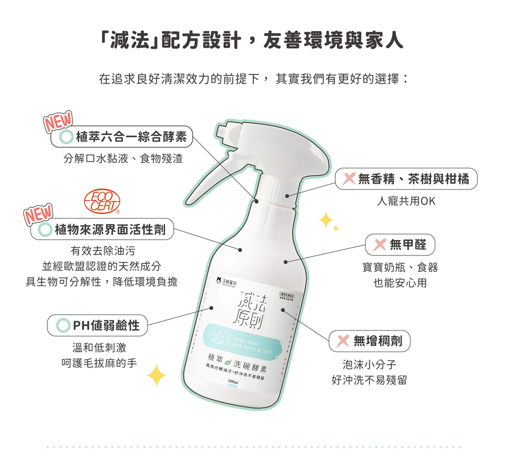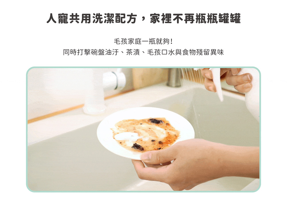 ● 一瓶打擊碗盤油汙、毛孩口水味