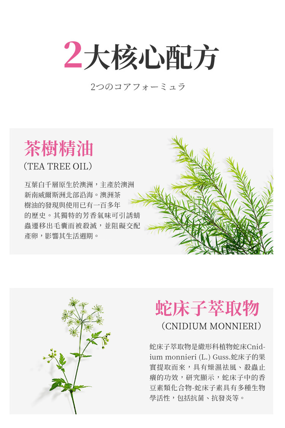 ● 茶樹精油+蛇床子萃取物