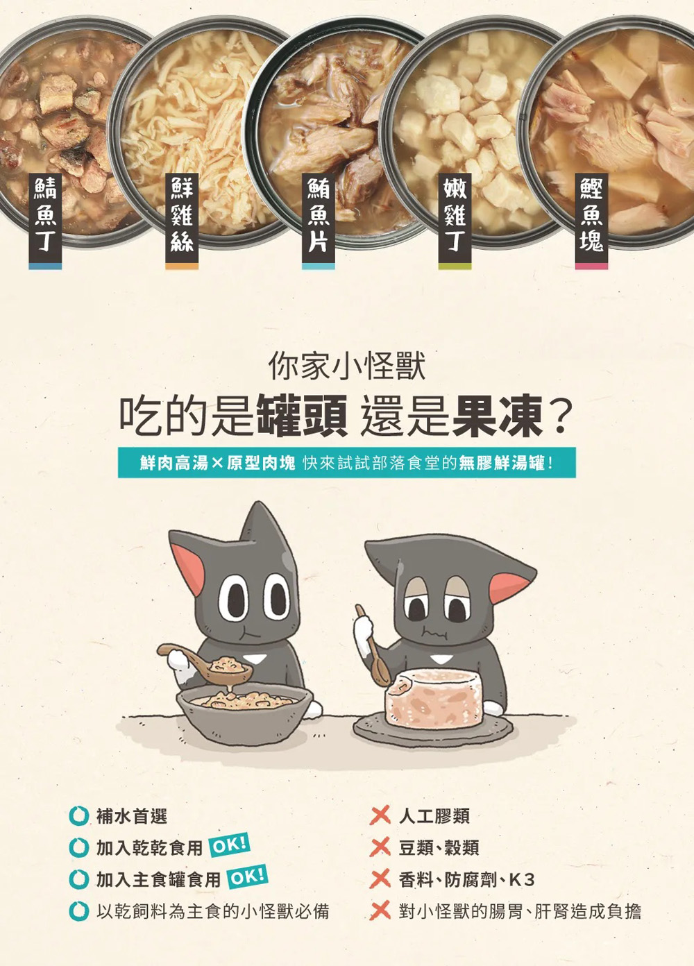● 無膠無穀,100% 純肉鮮湯罐