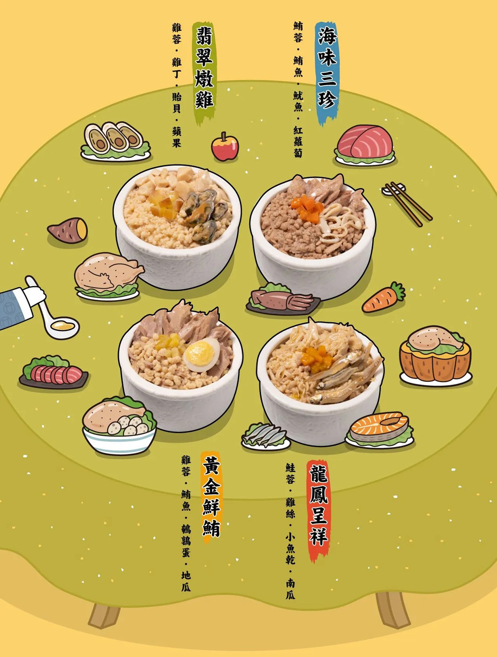 翡翠燉雞 80g龍鳳呈祥 80g海味三珍 80g黃金鮮鮪 80g