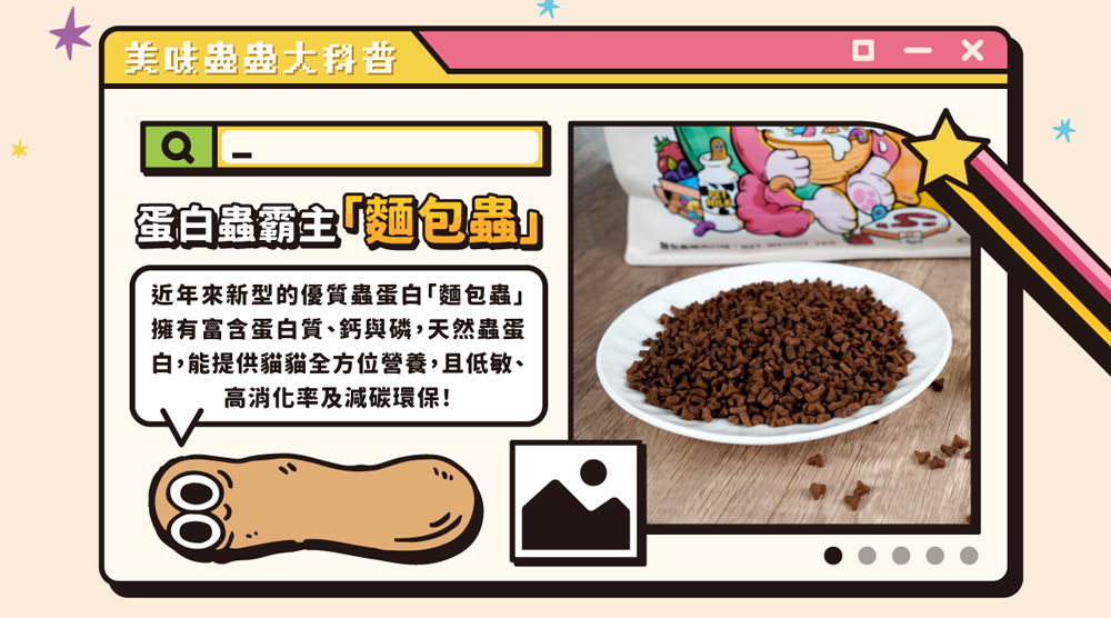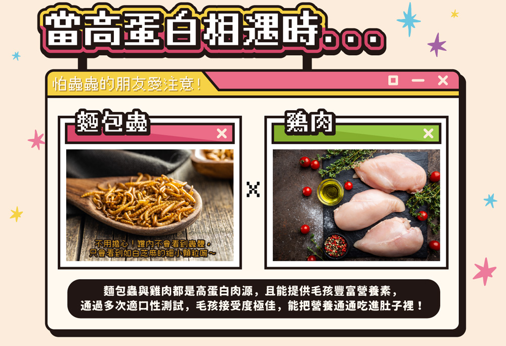 ● 使用新型麵包蟲肉源 低敏高蛋白