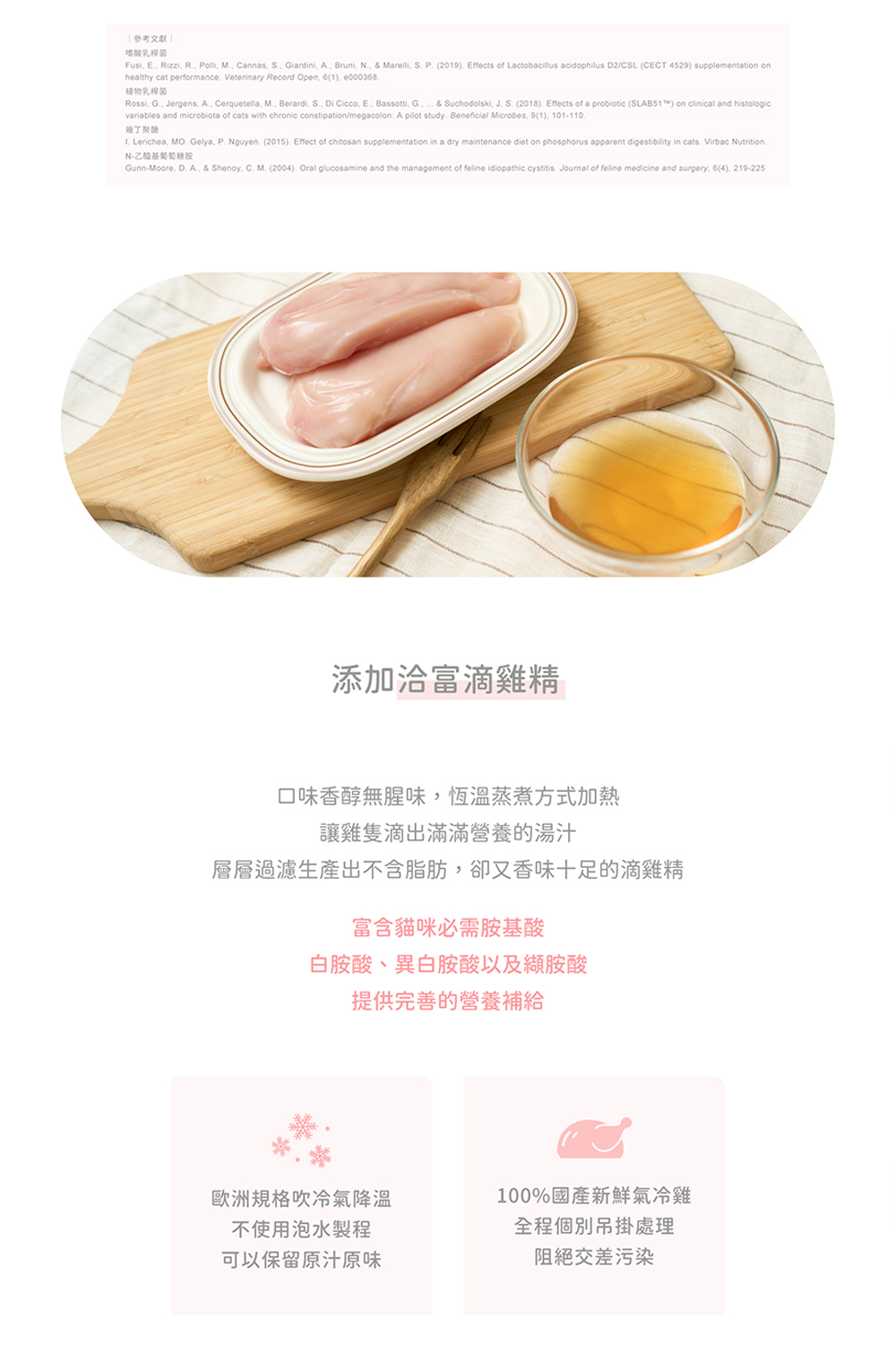 ● 98%鮮肉+滴雞精,2%膳食纖維營養配方
