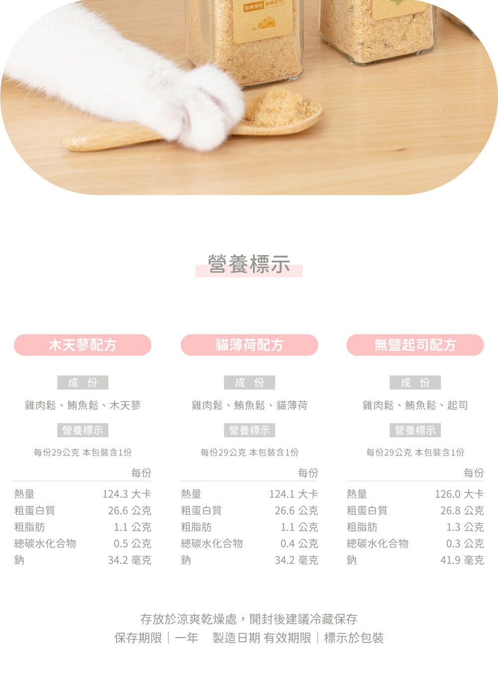 ● 精心設計三種保健配方,賦予不同的誘貓風味