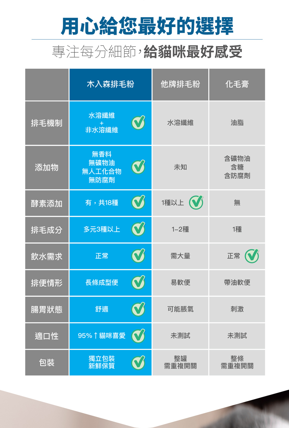 克服排毛粉需要多喝水、易卡便腹脹等缺陷,經千位見證者有感回饋,兼具美味營養與顯著速效排毛。還在吃化毛膏幫貓咪排毛嗎? 不如試試更天然、更安全健康,但同樣美味的排毛粉吧!