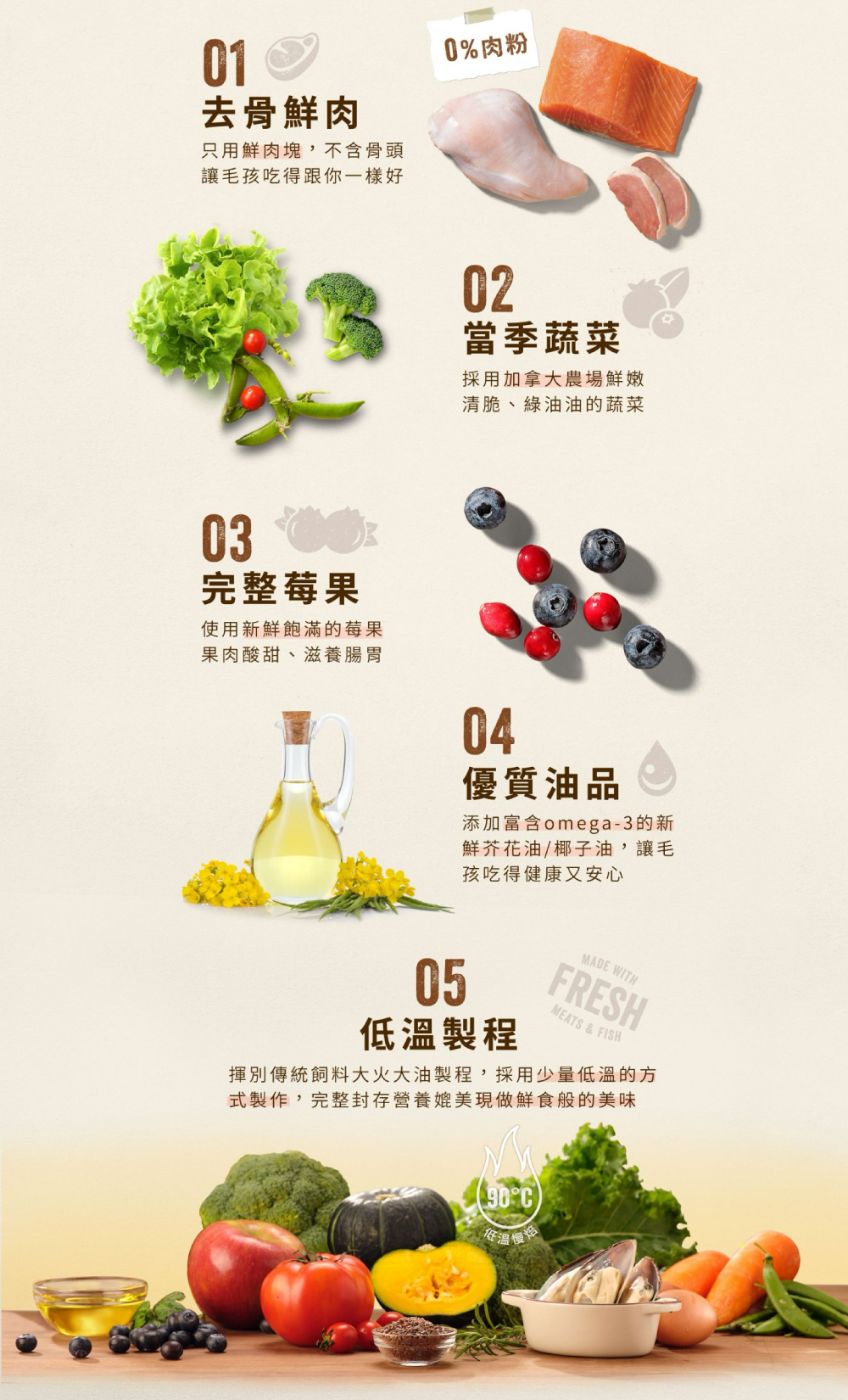 ● 火雞+鴨肉+鮭魚,經典高適口性