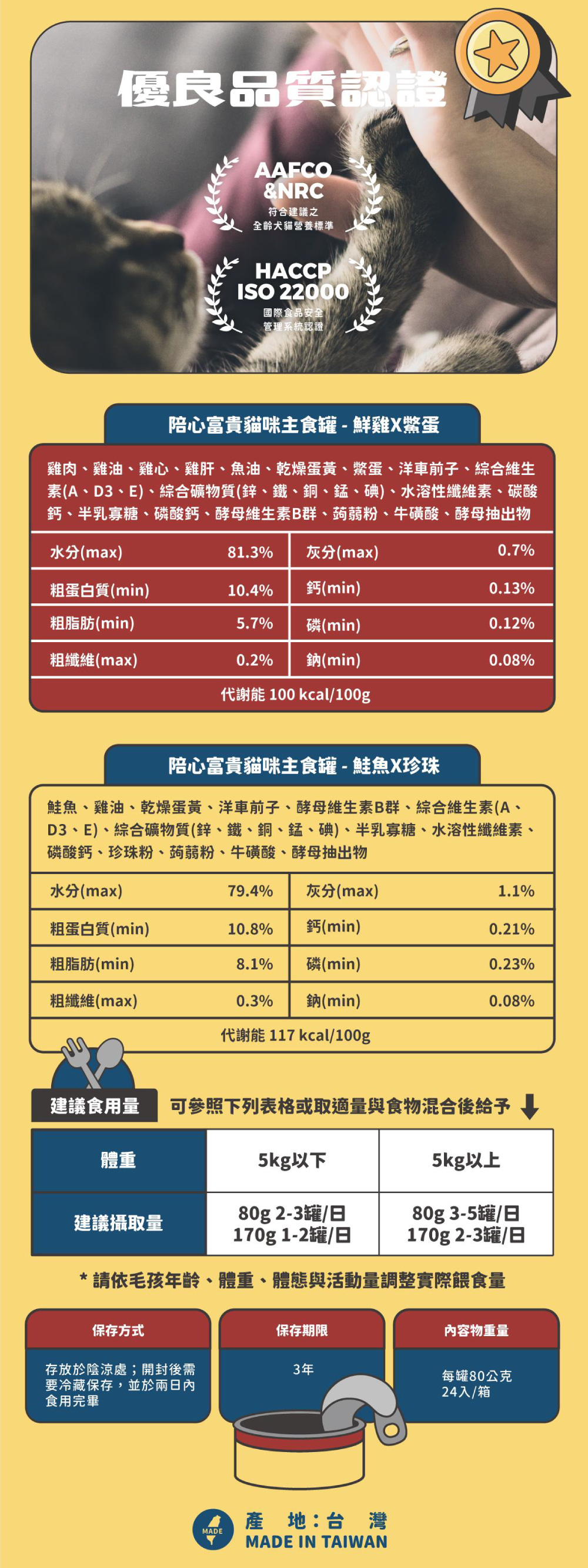 ● 符合AAFCO&NRC建議之營養標準,全齡貓適用